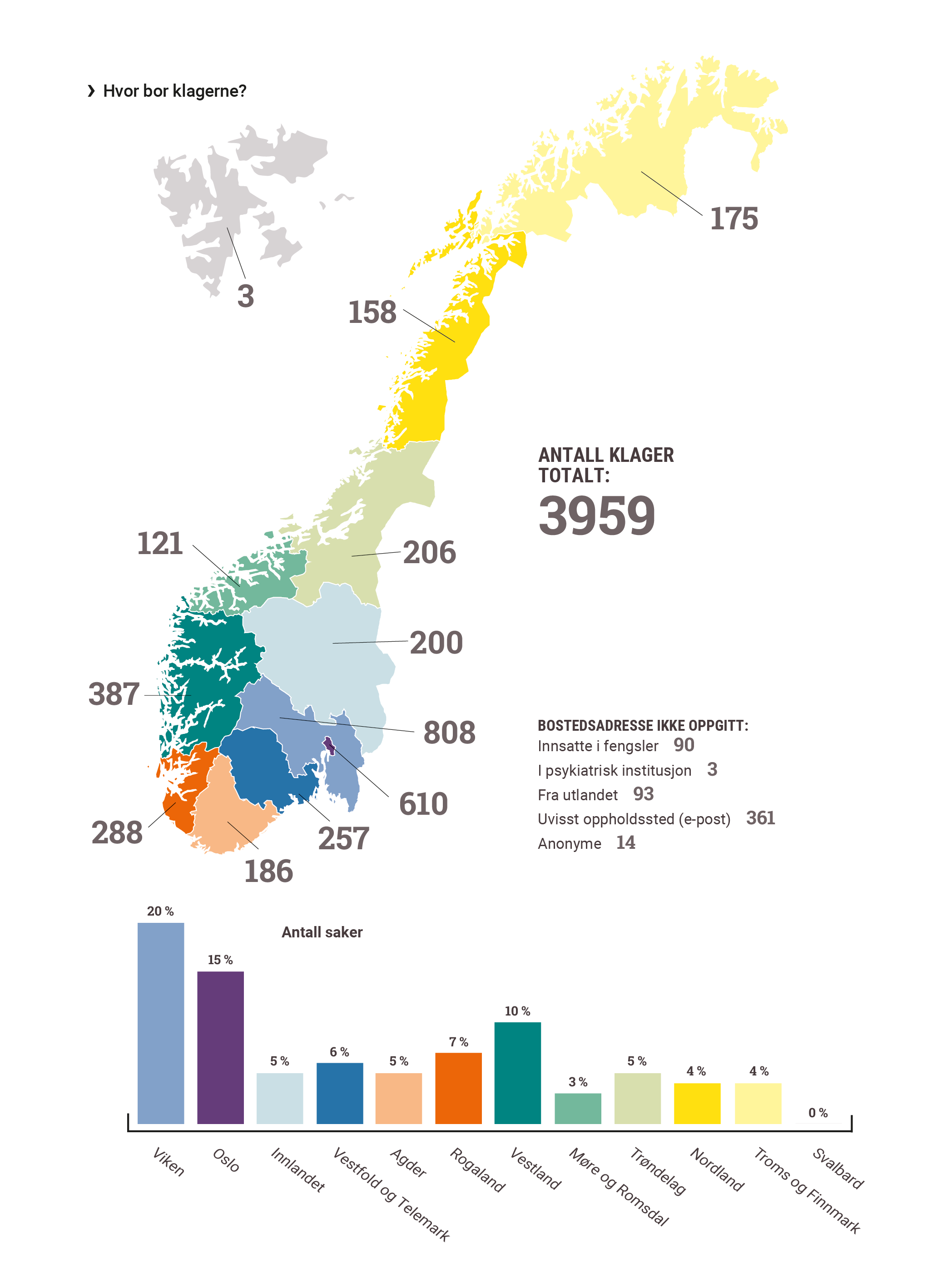 Vi mottar og behandler rundt 4000 klager i året fra enkeltmennesker som mener at myndighetene har gjort en feil. Sakstilfanget varierer fra klager på innsynsnekt til vedtak fra Nav og familiegjenforenings saker i utlendingssektoren. I tillegg får vi mange klager på lang saksbehandlingstid og manglende svar. Antagelig er det også mange som ikke klager hit, selv om den enkelte mener det er gjort feil.